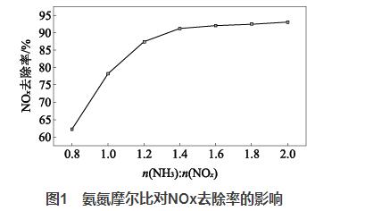 2.2氨氮摩爾比對NOx去除率的影響