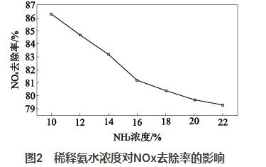 2.3氨水濃度對NOx去除率的影響