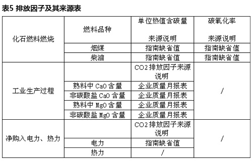 水泥企業涉及到的所有排放因子種類及來源詳見表5。