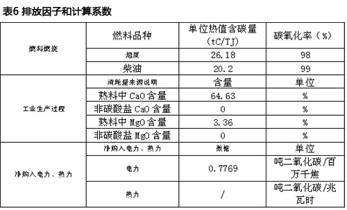 水泥企業二氧化碳排放涉及的排放因子和計算系數類別見表4。