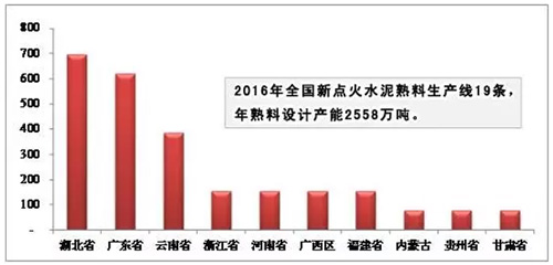 圖:2016年部分省份水泥熟料產(chǎn)能圖