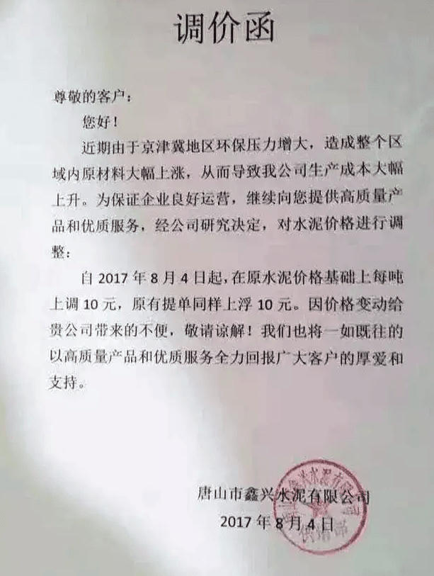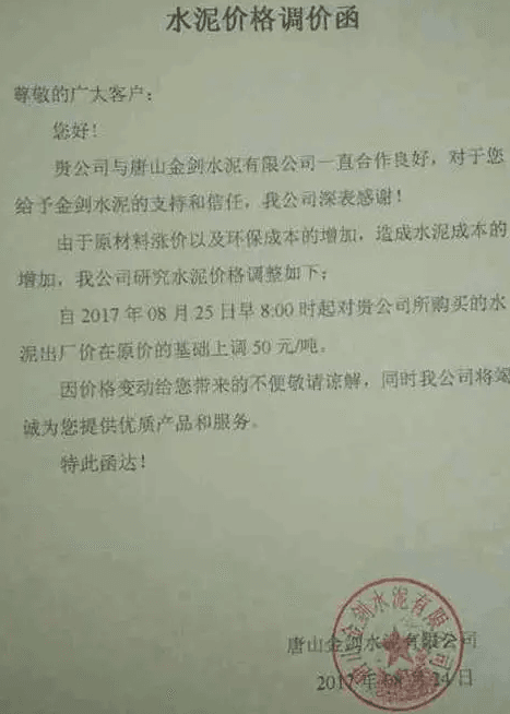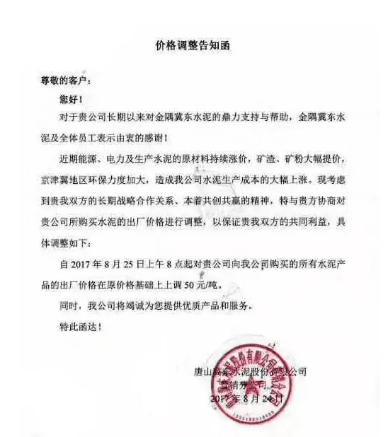 月初水泥人網曾發布河北省建筑業協會下發《關于河北省水泥行業去產能實施錯鋒生產的預通知》的消息,通知文件要求河北省內水泥熟料企業于8月8月0時至8月17日24時實施停窯限產10天。隨后部分企業便發布了調價函。調價函內容與本調價內容相似。上調價格幅度在10元~30元不等。8月10日左右滄州地區也跟漲30元/噸。