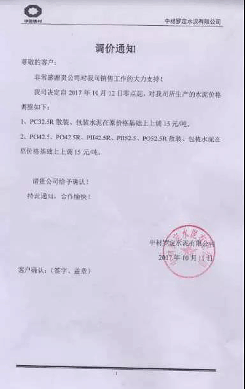 昨日(11日)珠三角多家企業(yè)發(fā)布提價(jià)通知稱水泥出廠價(jià)在原基礎(chǔ)上提高了15元/噸;陜西地區(qū)多家企業(yè)也于昨日發(fā)布價(jià)格調(diào)整通知,水泥價(jià)格在原基礎(chǔ)上上調(diào)30元/噸。