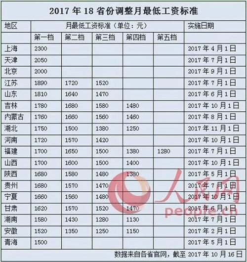 據了解,吉林、河南、山西、寧夏等多地在國慶節后開始執行新的最低工資標準。事實上為著力保障低收入勞動者權益,2017年以來至少已有18個省份調高了最低工資標準。