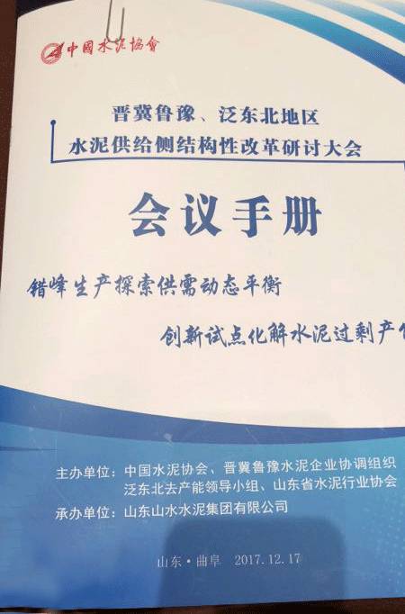 會議由中國水泥協會、晉冀魯豫水泥企業協調組織泛東北去產能領導小組、山東省水泥行業協會主辦。由山東山水水泥集團有限公司承辦。會議議題分為政策發布,協會領導講話和會議交流等。