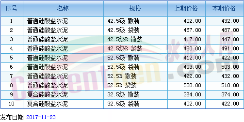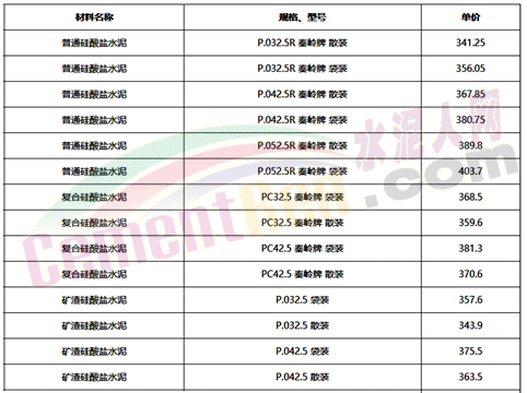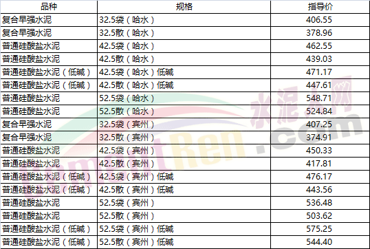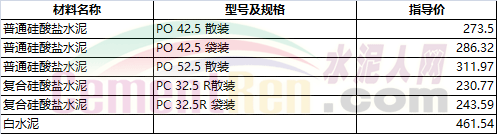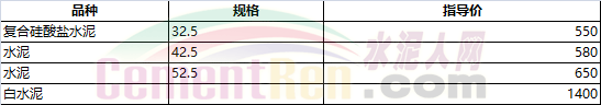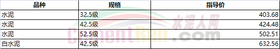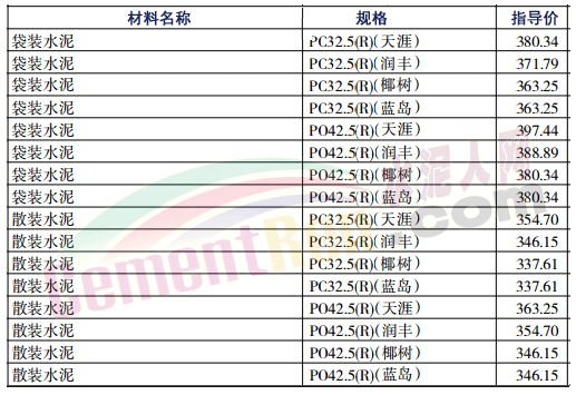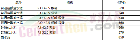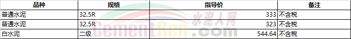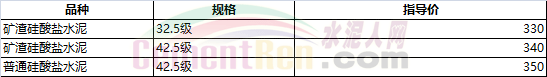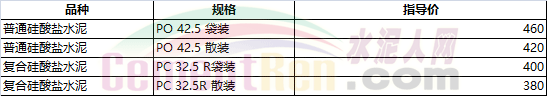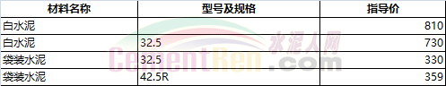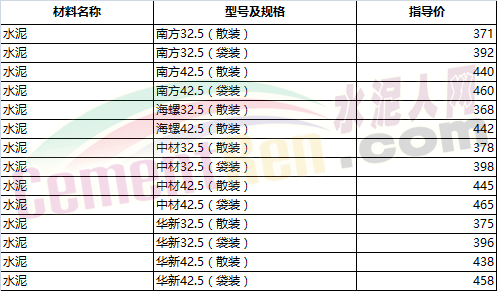 部分省市水泥指導價如下: