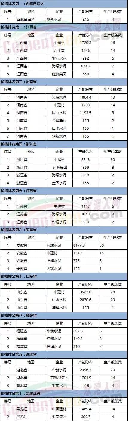 水泥人網盤點了近期除西藏地區外價格較高的華東區域以及區域內的主導企業產能分布情況。以此來預判2017年哪家企業最賺錢。