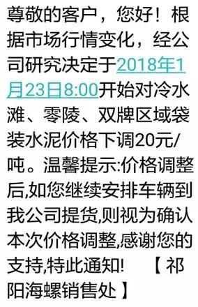 湖南祁陽海螺于23日下調了袋裝水泥的出廠價格,降幅在20元/噸。