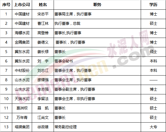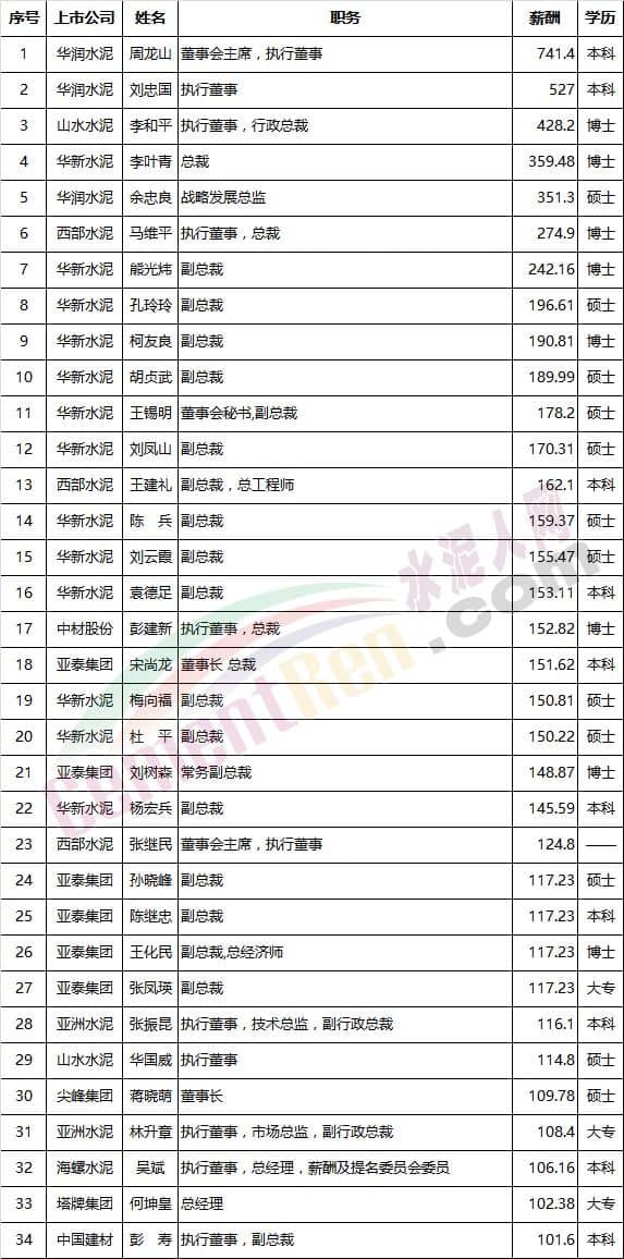 上數據僅為部分上市企業的高管年薪,同時因為部分水泥企業高管就職于集團公司,而不從上市公司領取薪金,因此以上排名尚有不足之處,僅供參考。( 1港元=0.81元人民幣換算)。