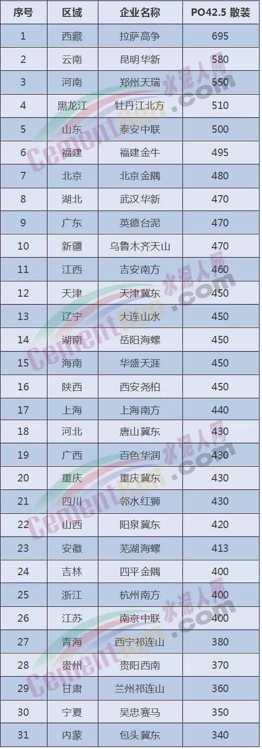 注:以上信息來源于水泥人網信息中心,如有差池,以實際報價為準!