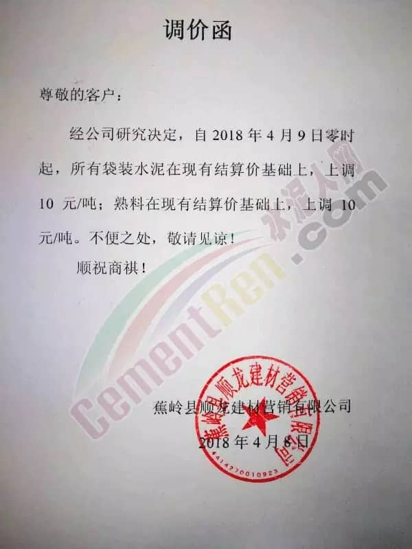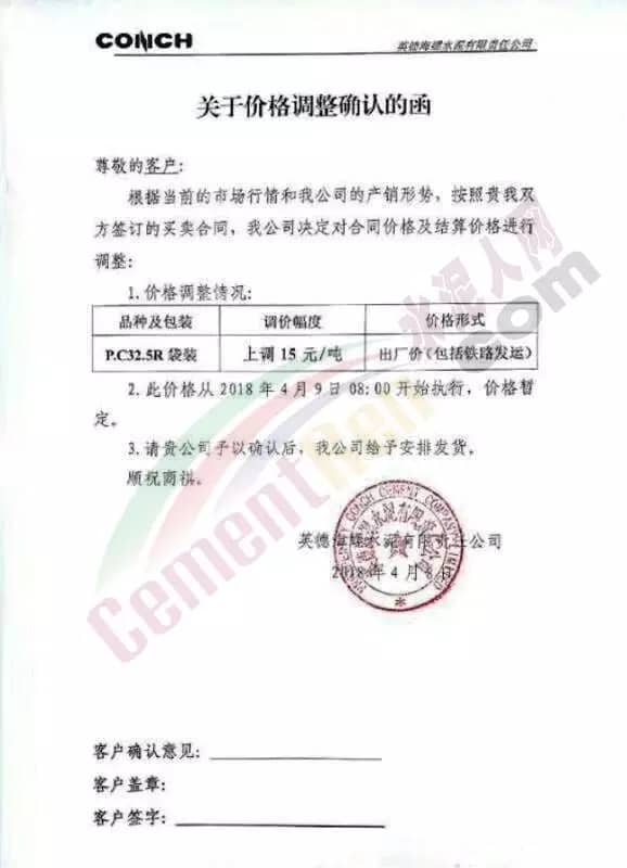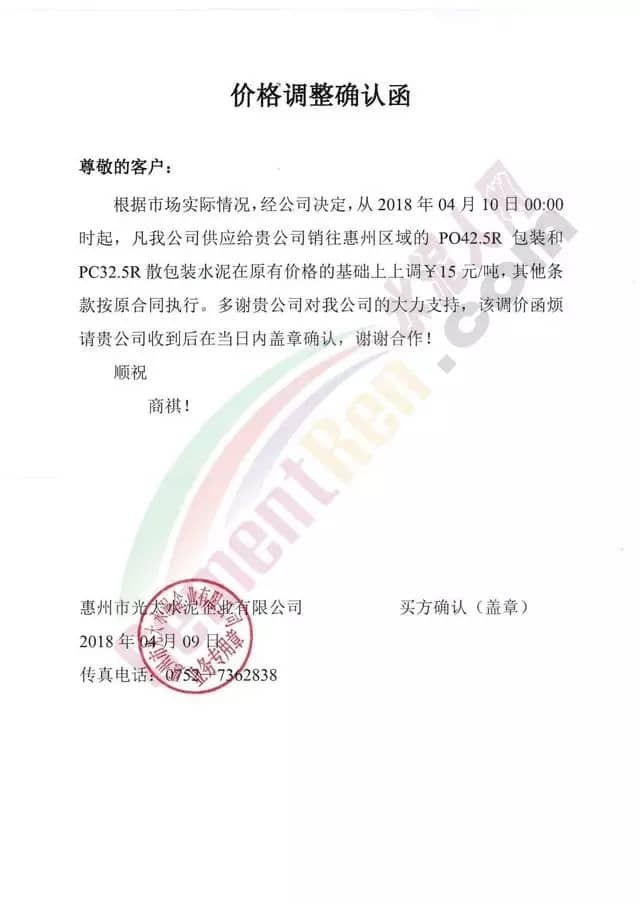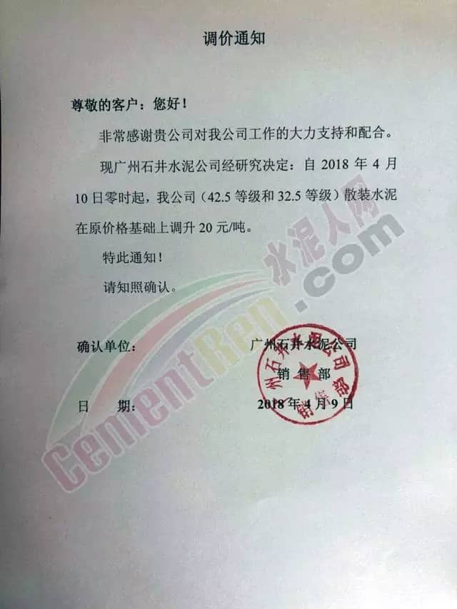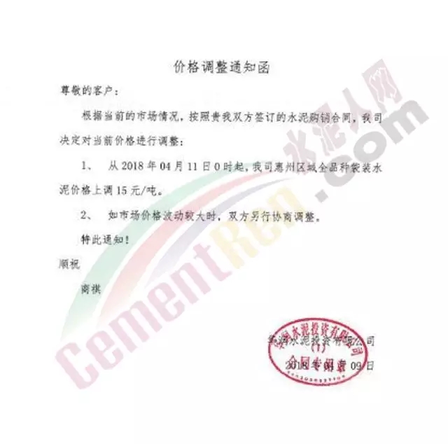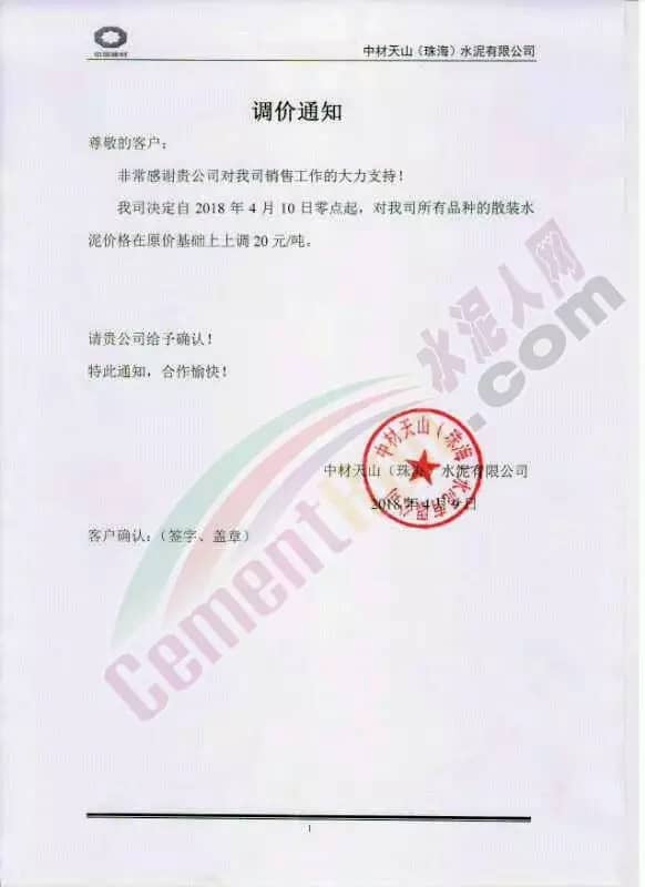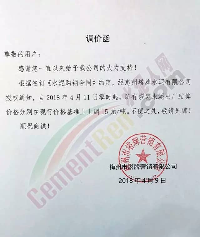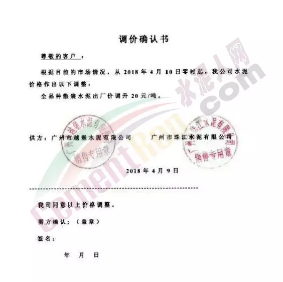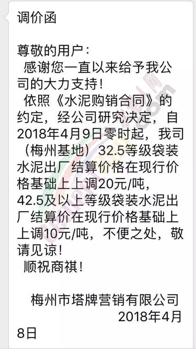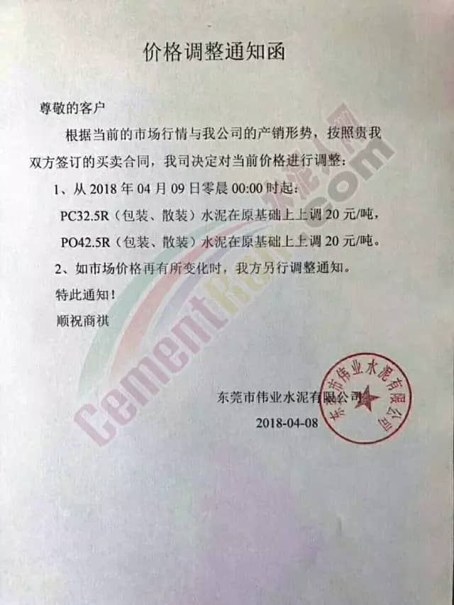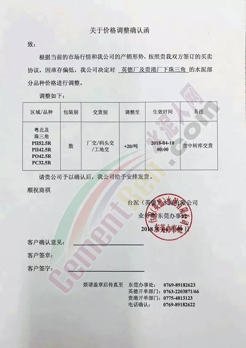東莞?jìng)I(yè)水泥調(diào)價(jià)函