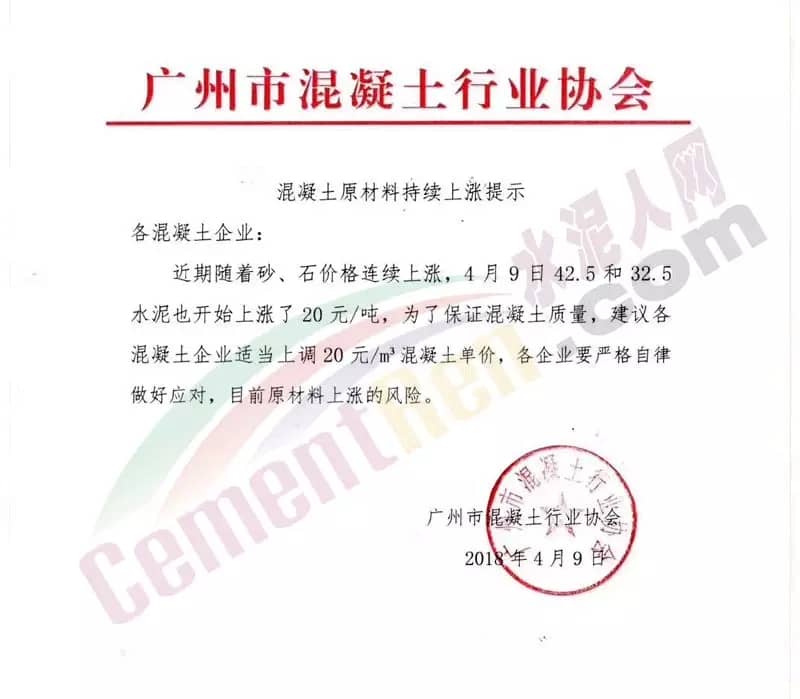 廣州混凝土行業(yè)協(xié)會(huì)提價(jià)提示