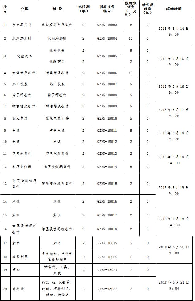 貴州西南水泥有限公司是西南水泥有限公司下屬子公司,于2012年3月21日成立。貴州西南水?dāng)M定于2018年5月中旬對下屬26家成員企業(yè)2018年度輔材備件進(jìn)行集中招標(biāo),通過邀請招標(biāo)(議價(jià))選擇資質(zhì)合格、保供能力強(qiáng)、質(zhì)量及技術(shù)服務(wù)均受控的供貨單位。現(xiàn)將相關(guān)招標(biāo)采購信息發(fā)布如下: