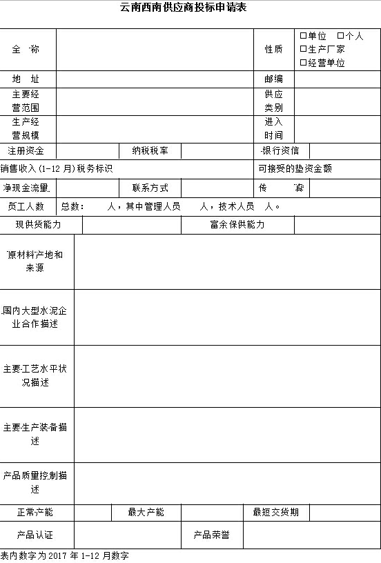 附件:云南西南供應(yīng)商投標(biāo)申請(qǐng)表