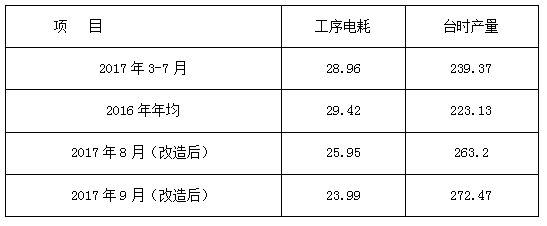 通過上表可以看出:8月份,改造前后水泥臺時增加23.83噸/小時電耗下降3.01度/噸。9月份改造前后增加33.1噸/小時,電耗下降4.97度/噸,提產(chǎn)降耗效果明顯。