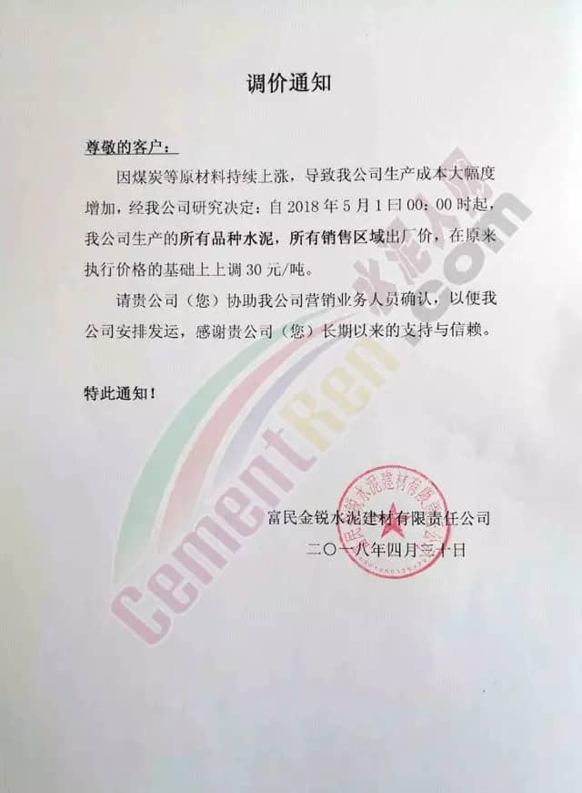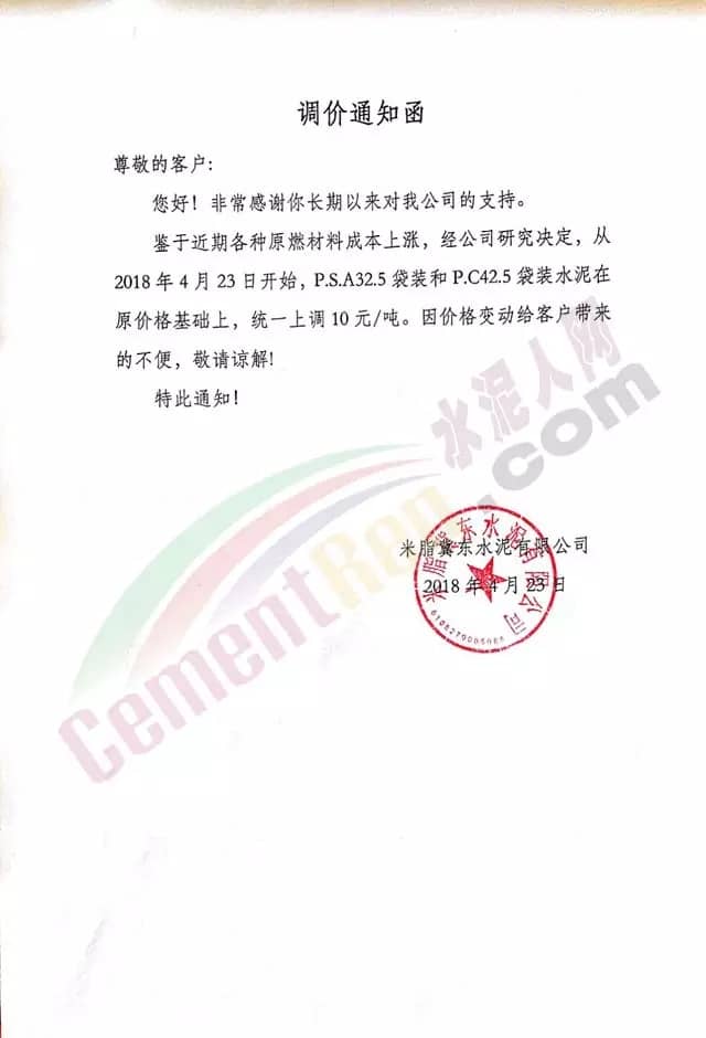 同期,甘肅平?jīng)龊B菟嗤ㄖ掠慰蛻簦鶕?jù)當(dāng)前公司的產(chǎn)銷形勢(shì),PO42.5散裝水泥在原價(jià)基礎(chǔ)上上調(diào)15元/噸。