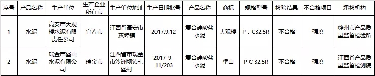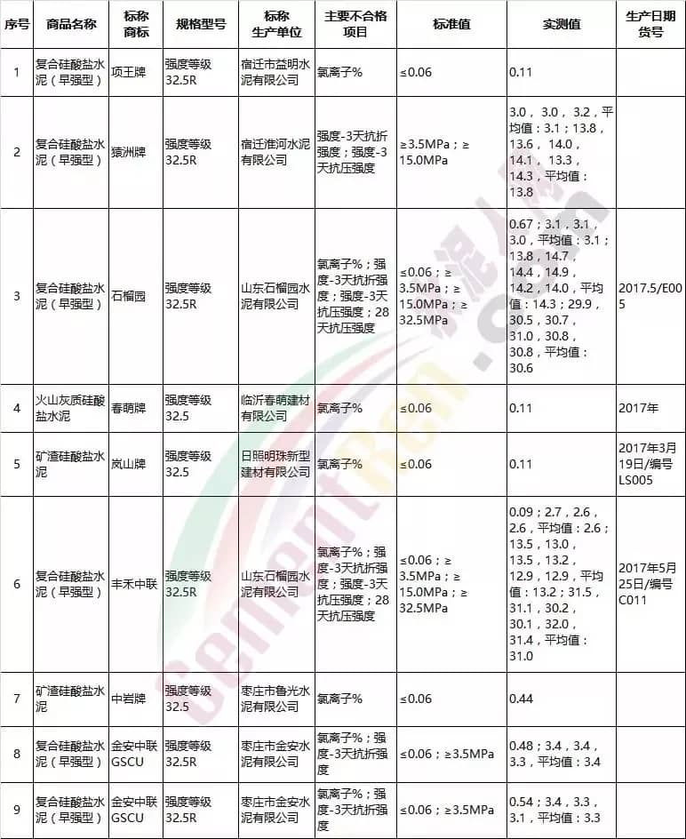 今年以來已經有多個省市發布了水泥抽檢不合格產品名單,詳情如下: