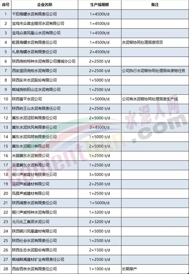 陜西省水泥企業(yè)名單(共28家)