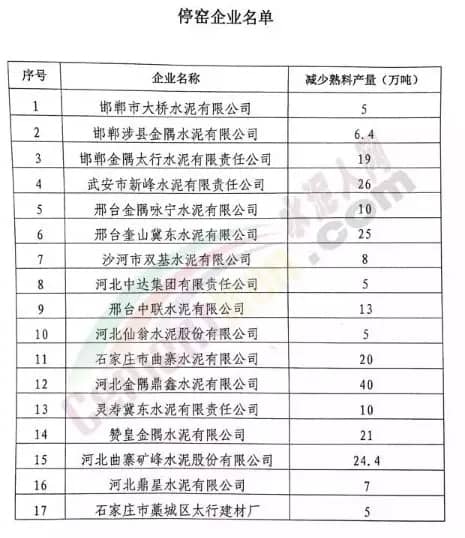 據(jù)水泥人網(wǎng)通訊員反饋:截止5月26日晚以上名單中的企業(yè)有近一半未停窯限產(chǎn),也有部分企業(yè)僅停一條窯線。因?yàn)橛辛瞬煌8G的,部分已經(jīng)停窯的企業(yè)也跟著陸續(xù)又開(kāi)啟了窯線。