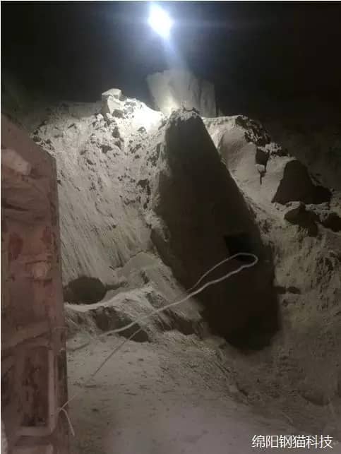 施工企業先利用四川綿陽鋼貓公司移庫設備降低庫容,再利用清庫設備清出掛壁料,解除了水泥大面積板結的險情