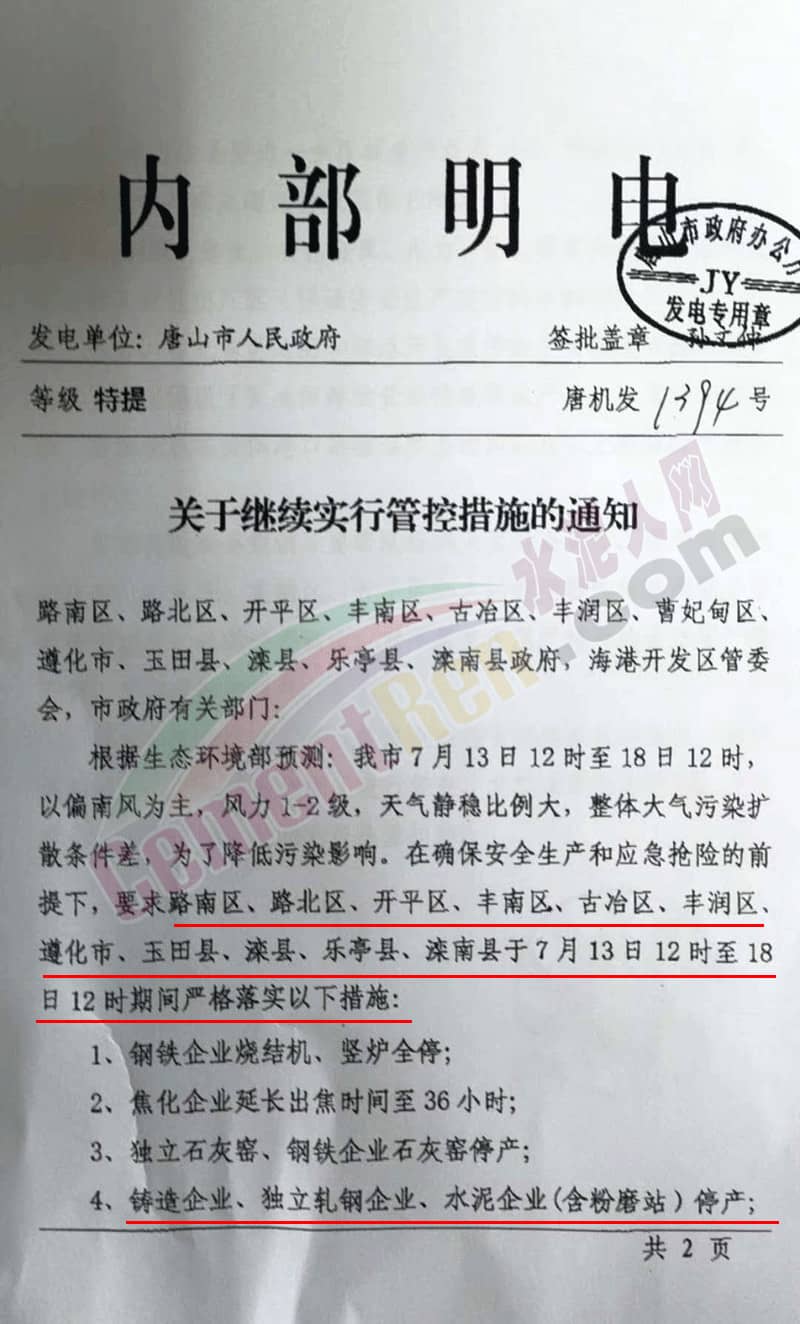 一方面是政府要求全部停產,另一方面企業稱未受任何影響。水泥人網小編也蒙圈了,于是致電發文單位唐山市豐潤區政府辦公室。相關負責人稱針對于工業類企業要咨詢政府工業科。