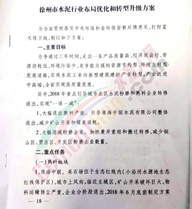 此事無獨(dú)有偶,今年五月份徐州大氣污染防治辦公室發(fā)布《徐州市水泥行業(yè)布局優(yōu)化和轉(zhuǎn)型升級(jí)方案》(以下簡稱“方案”)