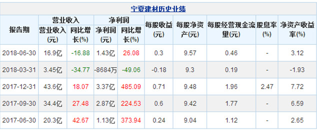 寧夏建材8月21日最新公布的2018年中報(bào)顯示,其營(yíng)業(yè)收入16.9億元,同比下降16.88%;歸屬于上市公司股東的凈利潤(rùn)1.43億元,同比增長(zhǎng)26.08%。