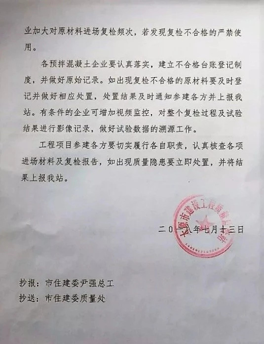 劣質建筑材料造成的事故幾乎每年都有發生,國家相關部門也多次調強水泥等建材質量的問題。去年12月初工信部發布《工業和信息化部關于提升水泥質量保障能力的通知》(工信部原〔2017〕290號)稱,水泥是經濟社會建設重要的基礎物資,是預拌混凝土、混凝土預制件等生產所需的標準化原料,其質量性能關乎建設工程的質量安全。