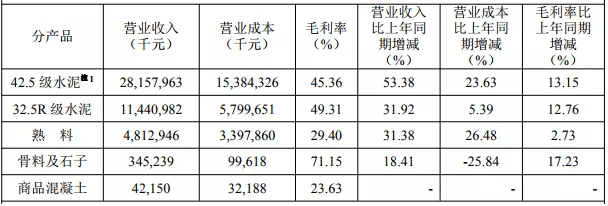 通過海螺水泥公布的上半年報可以看出,目前42.5級水泥和32.5R級水泥的毛利率分別在45.36%和49.31%,熟料的毛利率為29.40%。而骨料及石子的毛利率竟高達71.15%,而且相對于水泥以及熟料來看,砂石骨料產品的技術要求以及成本都相對較低,但是利潤空間非常可觀。