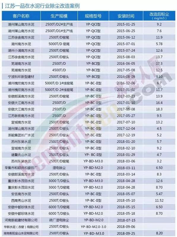 就在眾多電除塵器和除塵電源生產(chǎn)企業(yè)對電除塵器超低排放不抱希望時,江蘇一品環(huán)保人,審時度勢,敢為天下先,決定嘗試將電除塵器通過技術(shù)改造,也能符合國家要求達到超低排放標(biāo)準(zhǔn)。決心下定后,公司即組織技術(shù)人員,走訪和考察了諸多水泥企業(yè),悉心聽取水泥生產(chǎn)企業(yè)電氣設(shè)備部門一線技術(shù)人員的建議和設(shè)想,拜訪多名水泥設(shè)計研究人員,結(jié)合目前市場上電除塵器現(xiàn)有結(jié)構(gòu)和應(yīng)用狀況,在本公司已取得電除塵器豐富改造經(jīng)驗的基礎(chǔ)上,再次升級“智能變頻除塵電源”技術(shù),通過不斷的技術(shù)實踐和總結(jié),江蘇一品終于創(chuàng)立一套切實可行的電改電達到超低排放的系統(tǒng)工程技術(shù),從2017年下半年開始,應(yīng)用在10多條水泥生產(chǎn)線窯頭的電除塵器超低排放改造,改造案例已成功運行近一年,一直穩(wěn)定在<10mg/m3的超低排放標(biāo)準(zhǔn)!