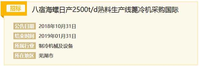 招標項目名稱:八宿海螺日產2500t/d熟料生產線篦冷機采購
