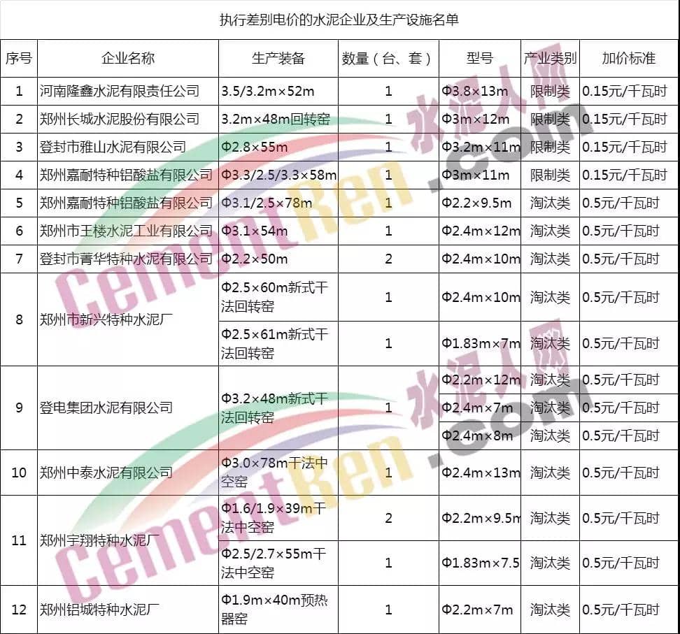一、鄭州煤炭工業集團龍力水泥有限責任公司、天瑞集團鄭州水泥有限公司、中國長城鋁業有限公司水泥廠、登封中聯登電水泥有限公司、天瑞新登鄭州水泥有限公司、登封市嵩基水泥有限公司、登封市宏昌水泥有限公司、登電集團水泥有限公司、鄭州順寶水泥股份有限公司、鄭州永華水泥有限公司、新鄭市恒發水泥廠、河南雙龍建材有限公司、洛鋼集團鋼鐵公司等13家企業用電不加價。
