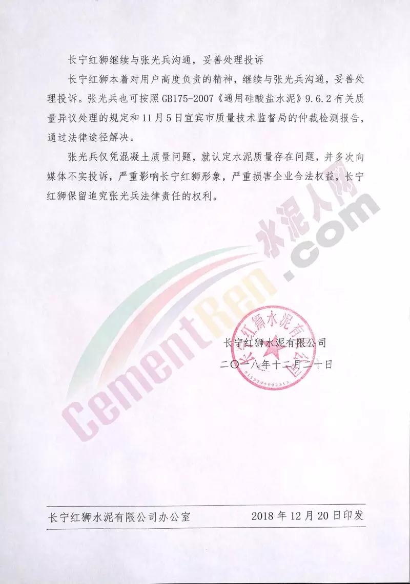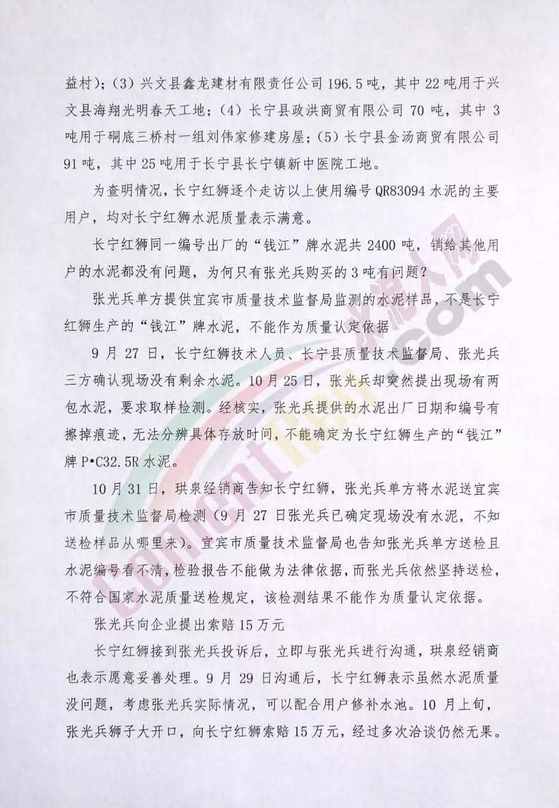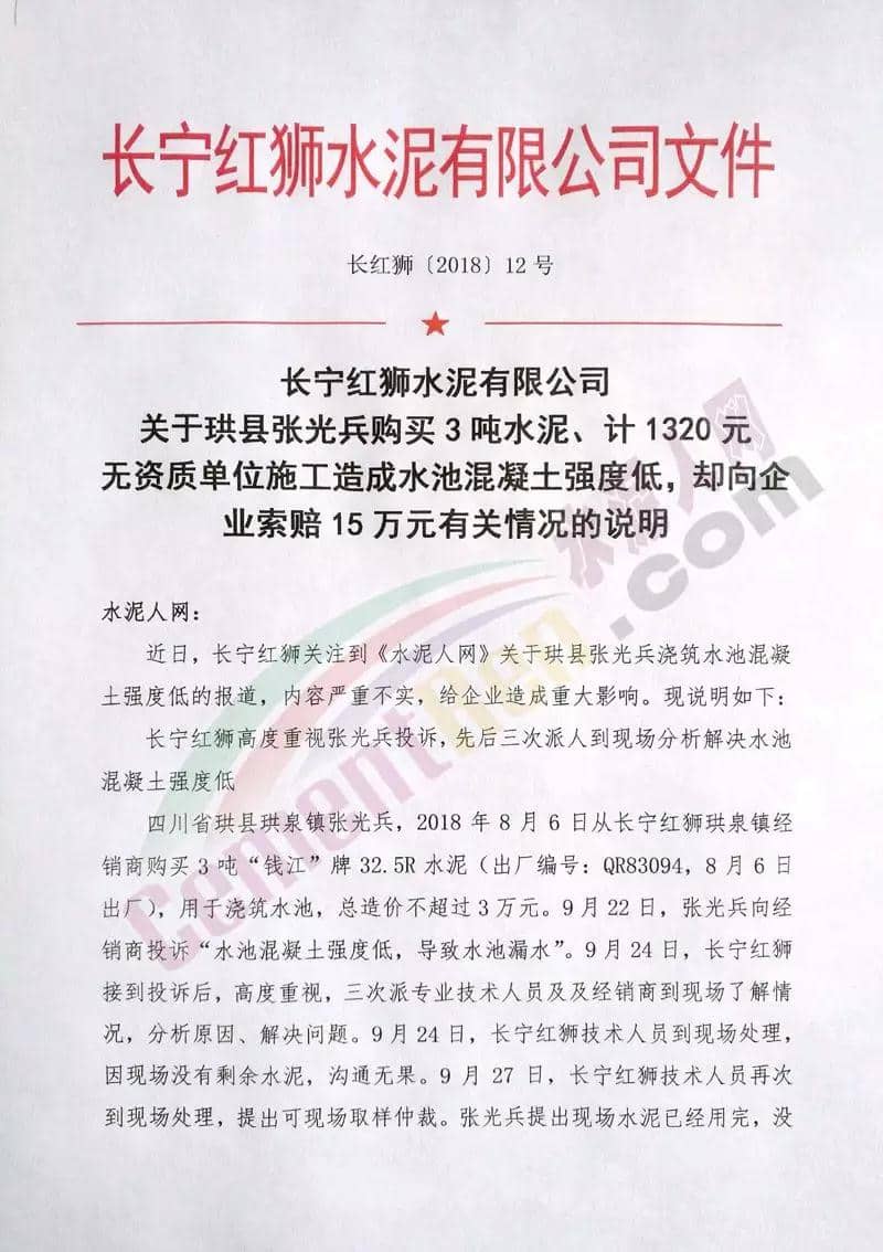 日前,位于四川省宜賓市長寧縣硐底鎮的長寧紅獅被質疑水泥質量不合格:珙縣居民張光兵在珙縣展鵬商貿有限責任公司購買了數噸紅獅水泥,用于修建水池,水池修好后出現漏水現象,而且水泥塊一捏就碎,張光兵等人開始懷疑水泥質量問題,此事件經水泥人網報道后,長寧紅獅非常重視,第一時間向水泥人網發來情況說明,具體內容如下: