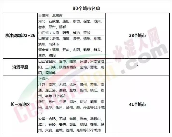 2018年錯(cuò)峰停限產(chǎn)區(qū)域不再僅僅限于京津冀及周邊地區(qū),長(zhǎng)三角一市三省、汾渭平原等區(qū)域也納入進(jìn)來(lái)。涉及城市數(shù)量將從此前的2+26個(gè)城市增加至現(xiàn)在80個(gè)城市。自2018年11月1日起,河北、河南、山東、山西、遼寧、吉林、陜西、甘肅、安徽、江蘇 、天津、新疆等幾十個(gè)地區(qū)近2000家水泥企業(yè)參與錯(cuò)峰停限產(chǎn)。