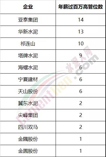 據水泥人網通訊員反饋,水泥行業企業在每年年初都會依據上年業績制定出相應的任務計劃,企業高管完成或超額完成年度計劃的,將也會獲得一筆不菲的獎金,金額從幾十萬到幾百萬元不等,所以水泥行業各位高管或將拿到歷史上“最高”年薪。