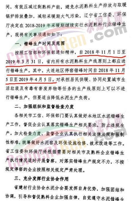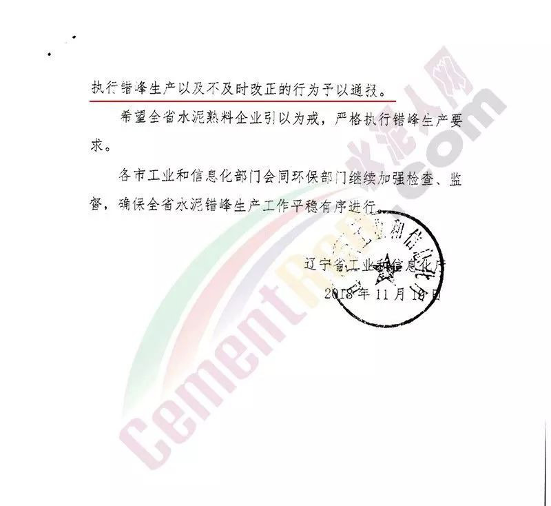 2018年11月10日遼寧省工信廳曾對大鷹水泥等企業未落實錯峰生產相關要求企業做出公開通報,通報原文如下: