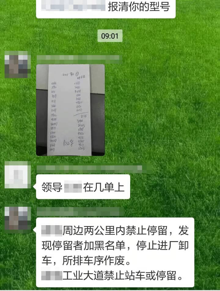 據(jù)了解,雖區(qū)域內(nèi)供應(yīng)略顯緊張,但是大多數(shù)企業(yè)門前并未見排長(zhǎng)隊(duì)現(xiàn)象。企業(yè)利用新媒體平臺(tái)微信群通知的方式通知提貨車排隊(duì)編號(hào)和裝車時(shí)間。要求提貨車在距離工廠約兩公里外等候。收到微信通知再出發(fā)到工廠,避免工廠周邊道路擁堵。在工廠周圍停留者將被企業(yè)列入黑名單,停止進(jìn)廠卸車裝貨,所排車序同時(shí)作廢。