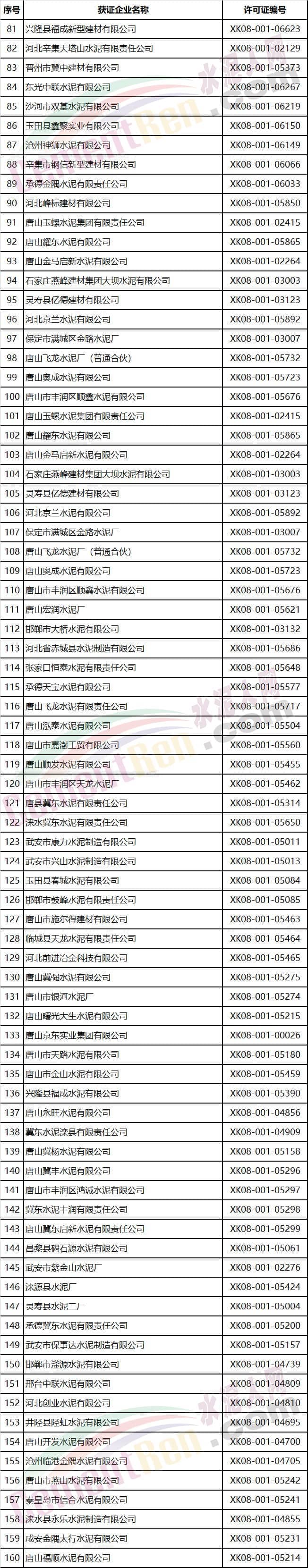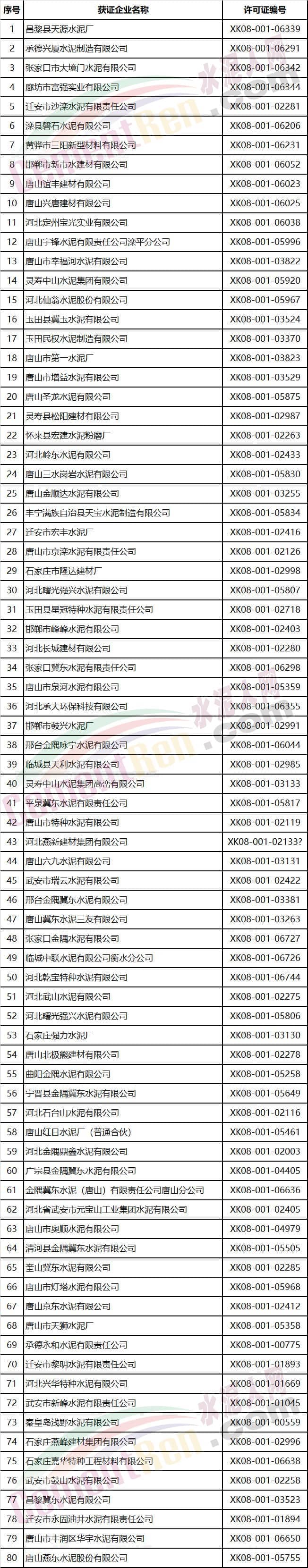 河北省部分水泥企業(yè)名單