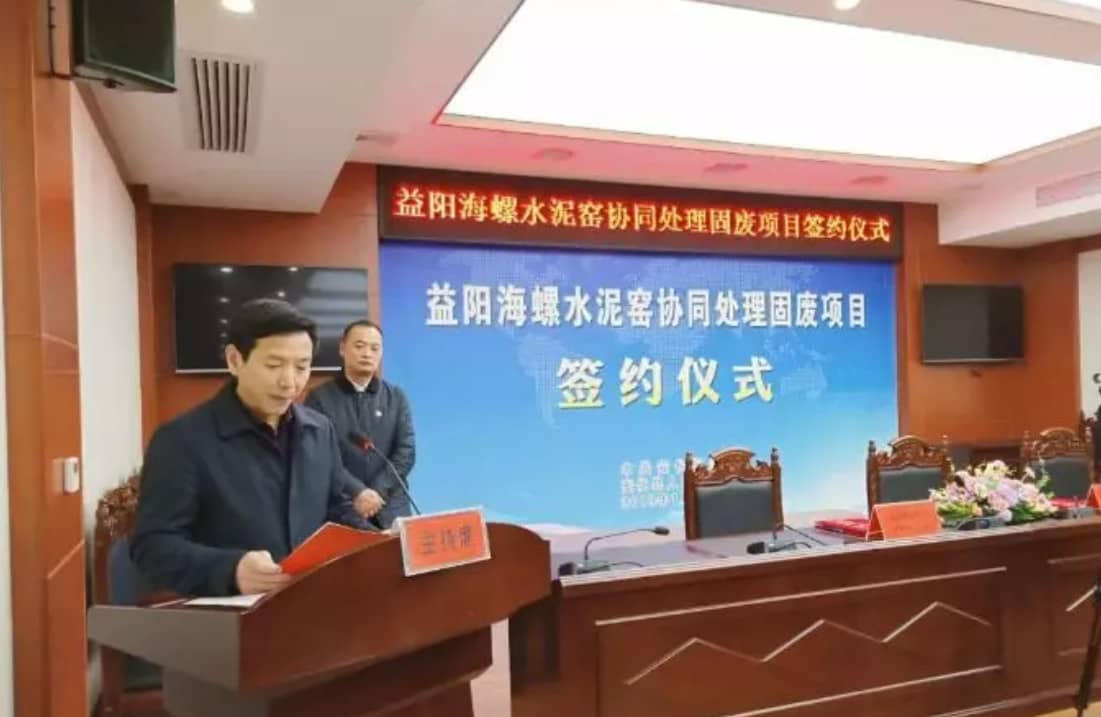 資料圖:1月17日上午8點30分,益陽海螺水泥窯協同處理固廢項目簽約儀式在湖南省益陽市安化縣人大常委會議室舉行,安化縣2019年實現招商引資工作“開門紅”。
