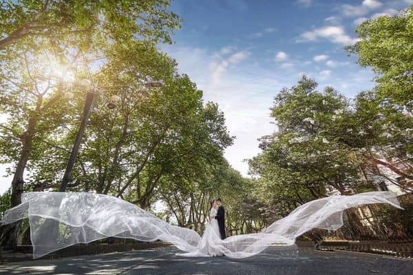 一對(duì)新人在寧國(guó)水泥廠生活區(qū)拍攝婚紗照