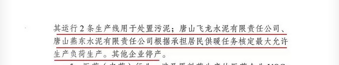 其中,豐潤區冀東水泥有限公司唐山分公司、灤州市冀東水泥有限公司灤縣分公司、灤南縣耀東水泥、古冶區冀東啟新水泥按照核定處置污染的最低負荷生產。