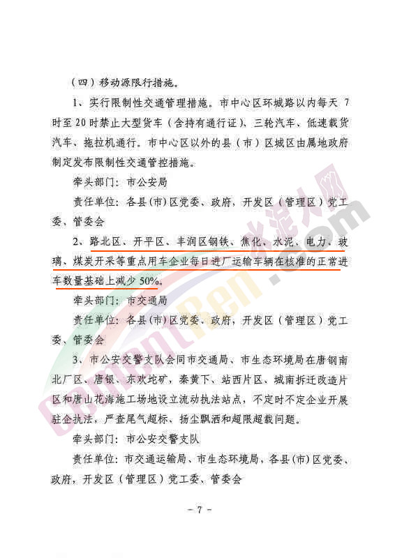 5、其他行業。路北區、高新區、開平區、豐潤區、遵化市、遷西縣、玉田縣陶瓷、橡膠、獨立軋鋼、磚瓦窯、獨立石灰窯(含燃燒天然氣的企業),每家停產時間不少于15天。