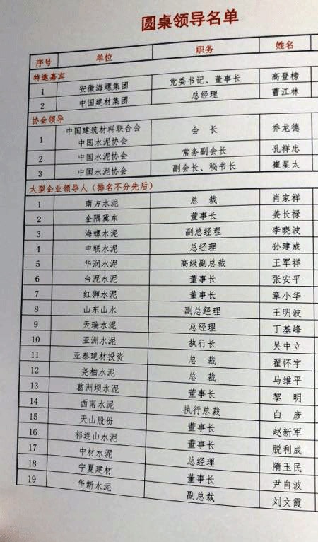 出席峰會的有19家大型水泥企業(yè)領(lǐng)導(dǎo)人為