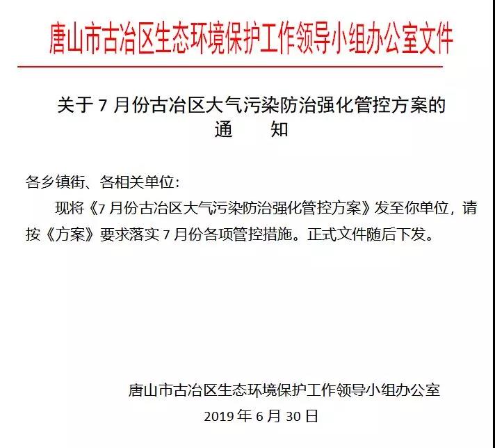 其中唐山豐潤區(qū)7月份大氣污染防治強化管控方案稱,為進一步改善全區(qū)環(huán)境空氣質量,確保完成年度大氣污染防治目標任務,結合7月份大氣擴散條件,制定本方案。當啟動重污染天氣應急響應或市委市政府、市生態(tài)辦有具體要求時另行調整。