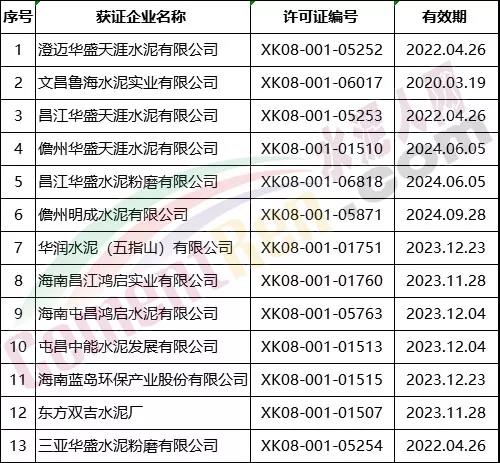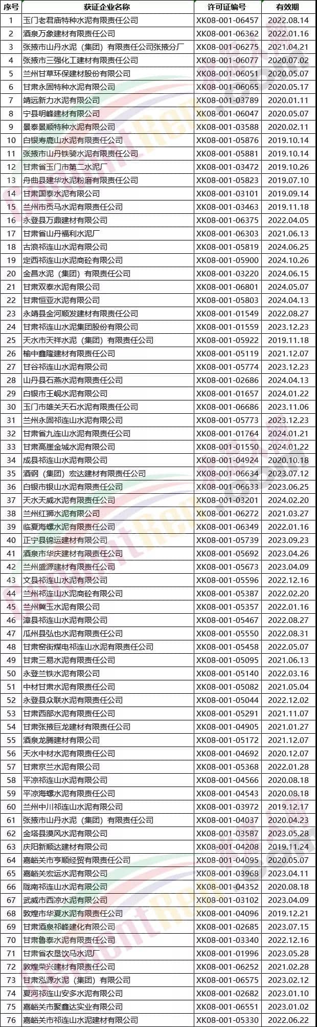附上海、福建、海南、重慶、甘肅四省兩市220家水泥生產企業名單