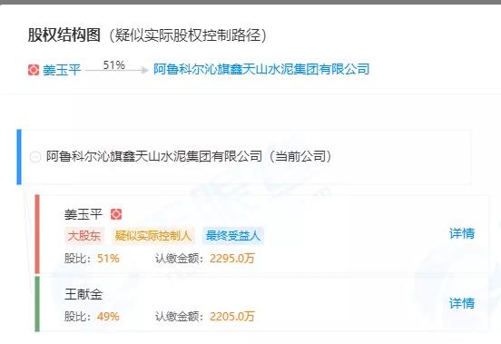 天眼查數據顯示:王獻金為阿魯科爾沁旗天山水泥集團有限公司法定代表人,擁有企業49%的股份。同時擔任企業執行董事和總經理職務。
