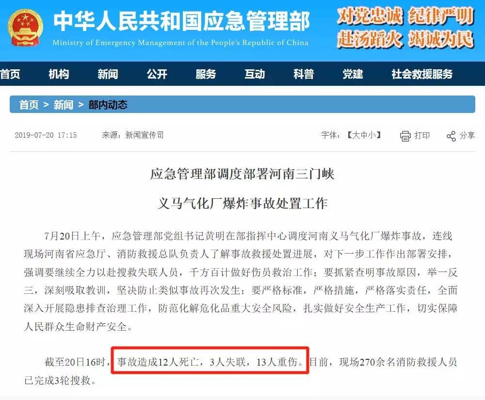 截至20日16時,事故造成12人死亡,3人失聯,13人重傷。目前,現場270余名消防救援人員已完成3輪搜救。