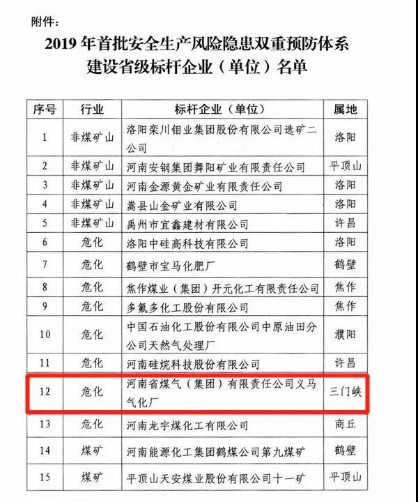 讓人意想不到的是,這次爆炸的企業在十天前,剛剛獲得安全標桿企業---河南省煤氣集團三門峽義馬氣化廠還被列為河南省“2019年首批安全生產風險隱患雙重預防體系建設省級標桿企業”。