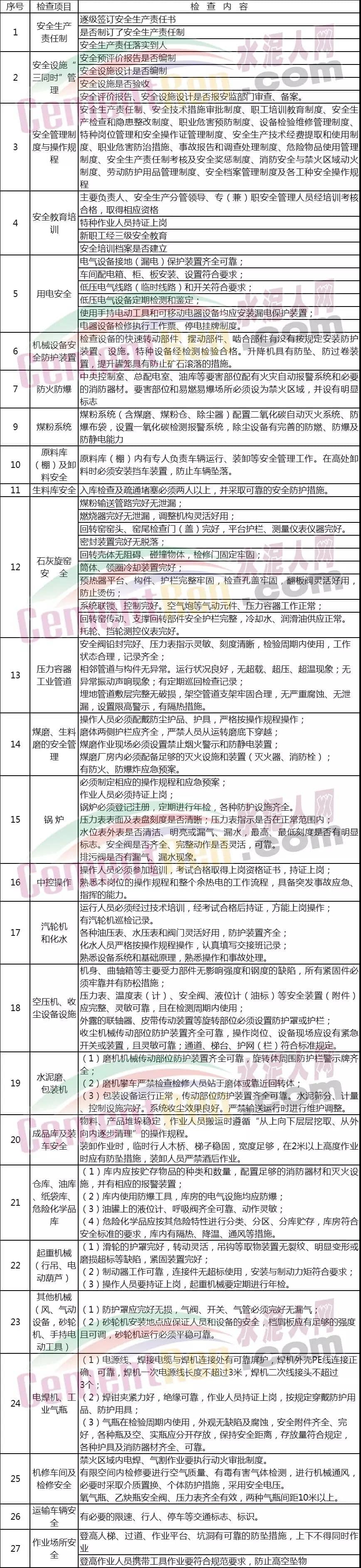 此次安全事故發生之后,或將引起新一輪全國安全大檢查,危化、水泥、鋼鐵等領域依然是檢查重點領域。下面我們一起來了解一下水泥企業安全檢查查什么?