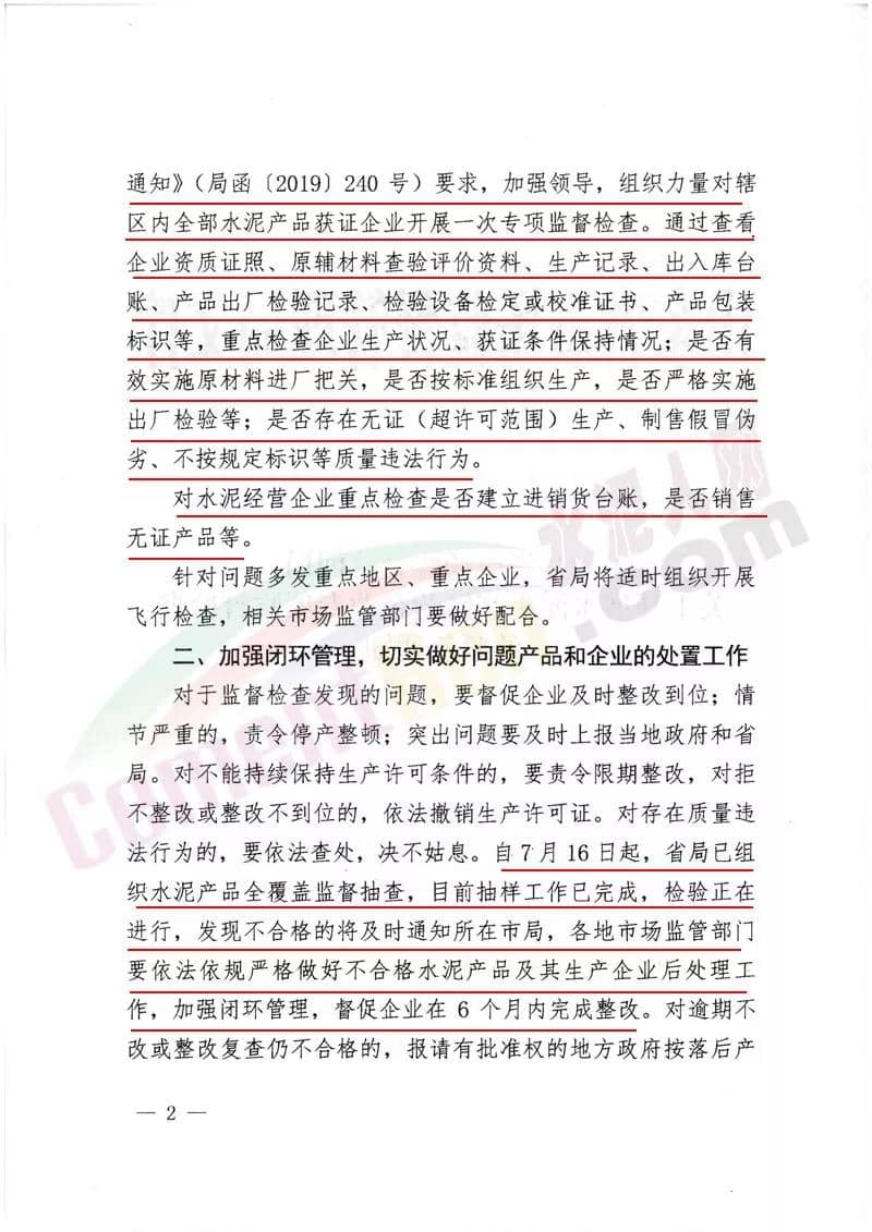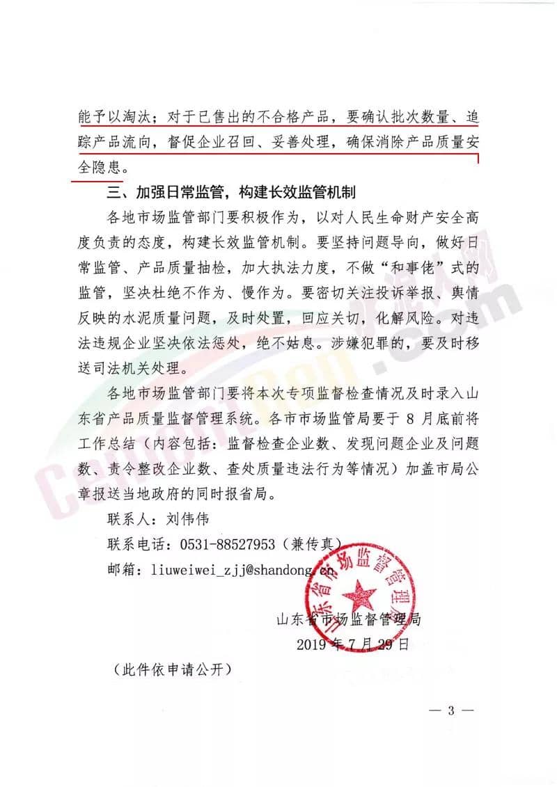 應上述文件要求7月30日,濟寧市市場監管局向各縣市區局轉發了上述通知。并于近日開展了水泥生產經營企業專項監督檢查,主要檢查是否存在無證(超許可范圍)生產、制售假冒偽劣、不按規定標識等質量違法行為等。